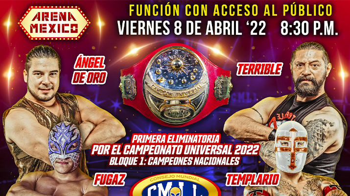 Después de tres años, el Campeonato Universal del CMLL será disputado en una primer eliminatoria que se realizará el viernes 8 de Abril en la Arena México.