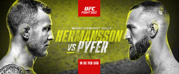 UFC FIGHT NIGHT: HERMANSSON vs PYFER se llevará a cabo el sábado 10 de febrero desde UFC APEX en Las Vegas, Nevada